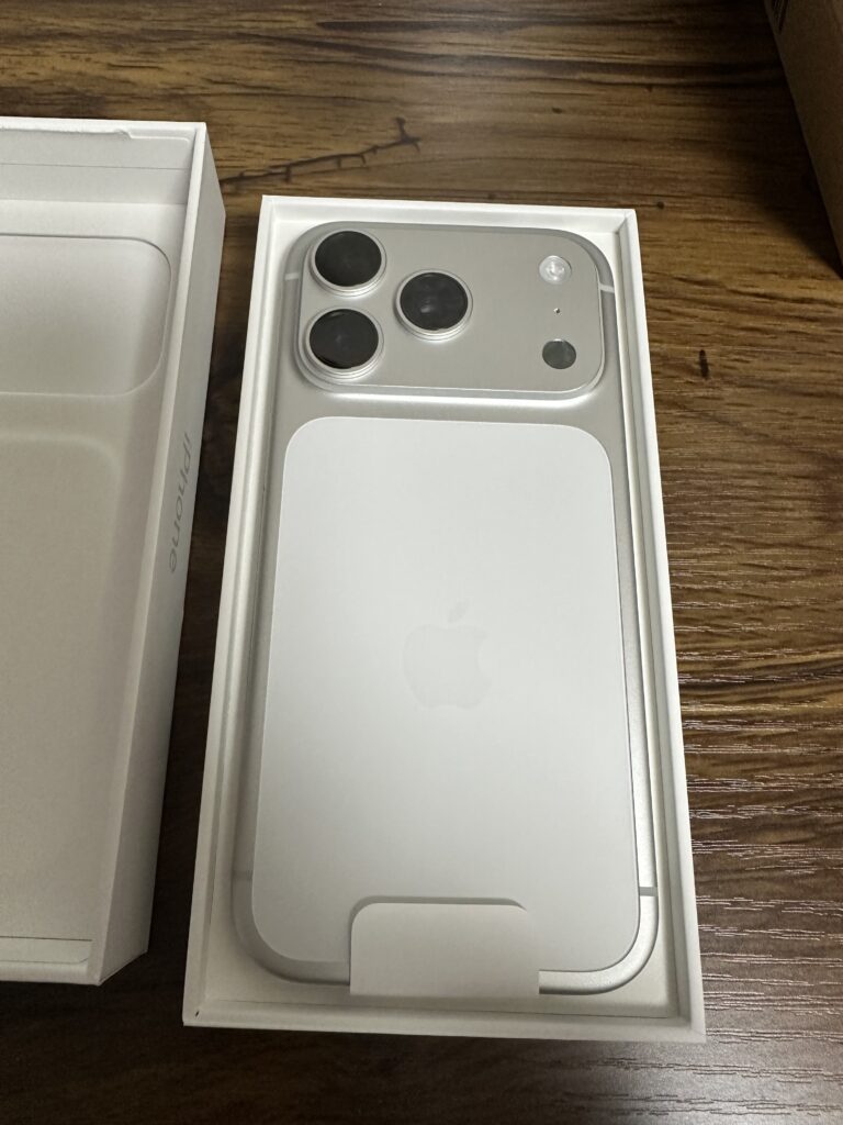 こちらがiPhone17Pro、シルバーです。