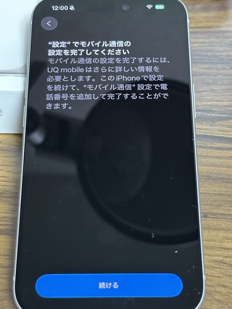 この後UQモバイルからSMSが来て