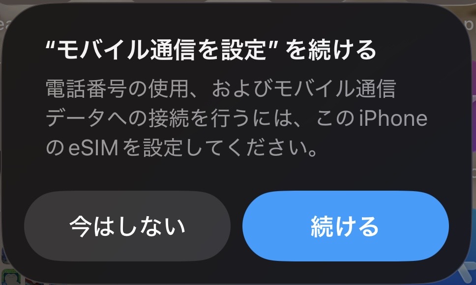 ほ〜ん?やっぱ今ここでeSIMを設定するみたいですね。