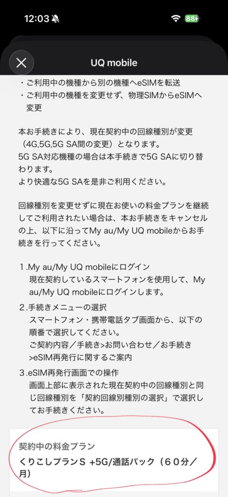どうやら現状のプランを継続したままeSIMにはできるらしいです
