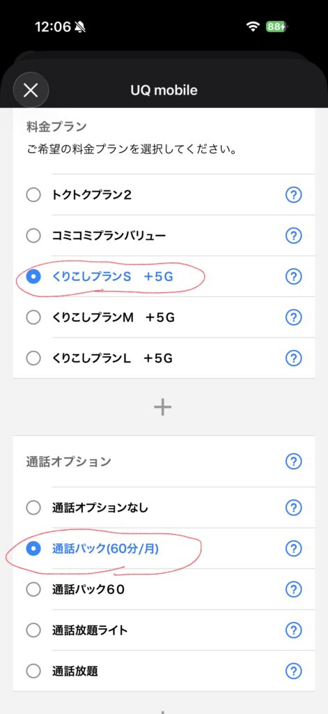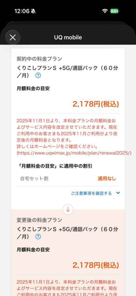 なんかよくみると、今自分が契約しているプランを記載してありました。
