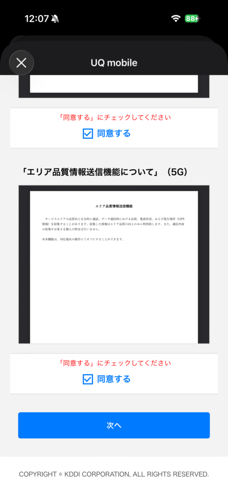 2箇所に同意して「次へ」を押下してみましょう。