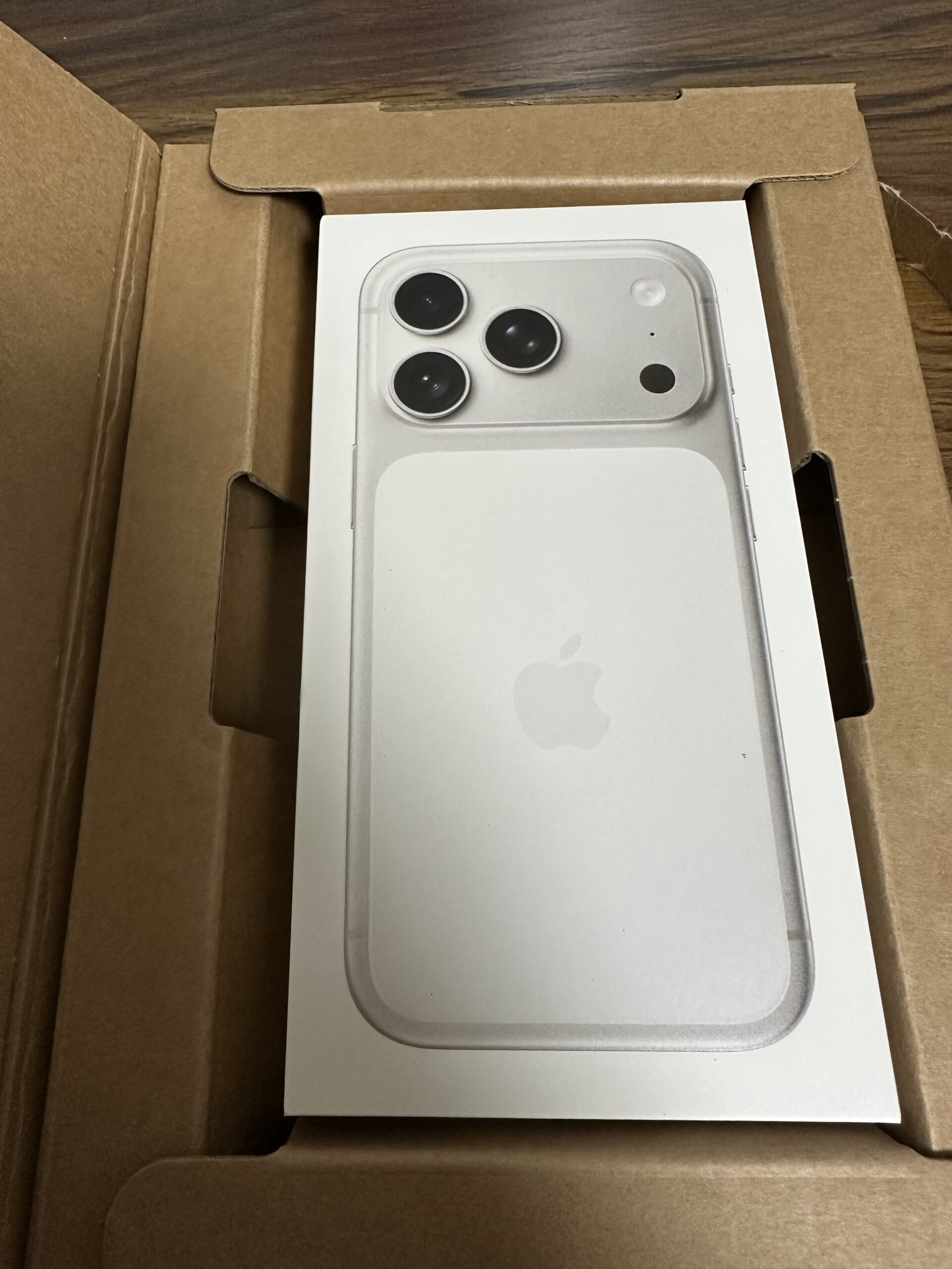 こちらがiPhone17Pro、シルバーです。